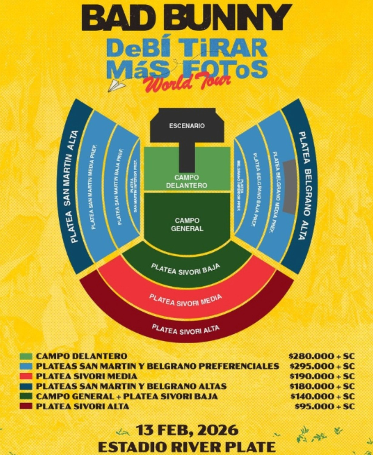 El cantante puertorriqueño llega con su gira mundial “DeBÍ TiRAR MáS FOToS World Tour”. Se presentará en el 13 de febrero de 2026 en el estadio Monumental.