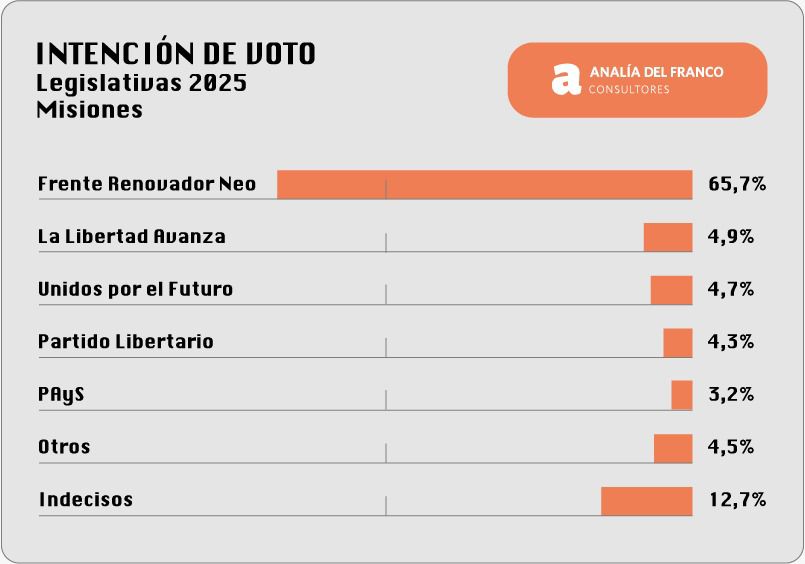 Detrás del Frente Renovador, que aparece cada vez más consolidado y sin rivales serios a la vista, se ubica un pelotón de cuatro fuerzas que, individualmente, no logran romper el techo del 5%: el Partido Libertario, La Libertad Avanza, el Partido Agrario y Social (PAyS), y Unidos por el Futuro. Todos con discursos desconectados de las preocupaciones cotidianas del misionero promedio, y con más ruido mediático que sustancia electoral.