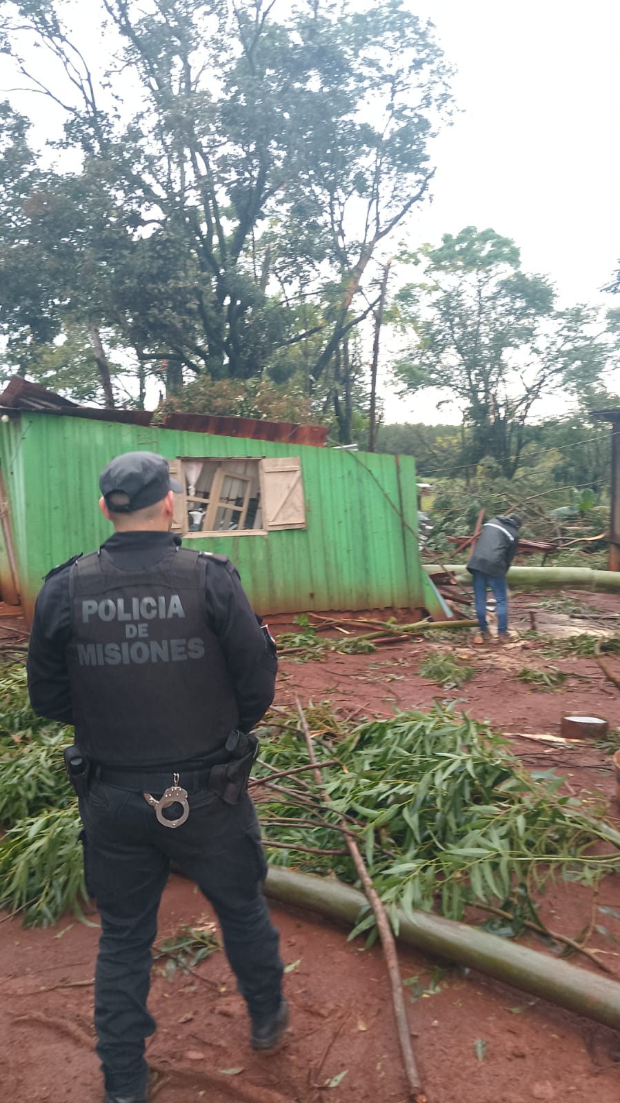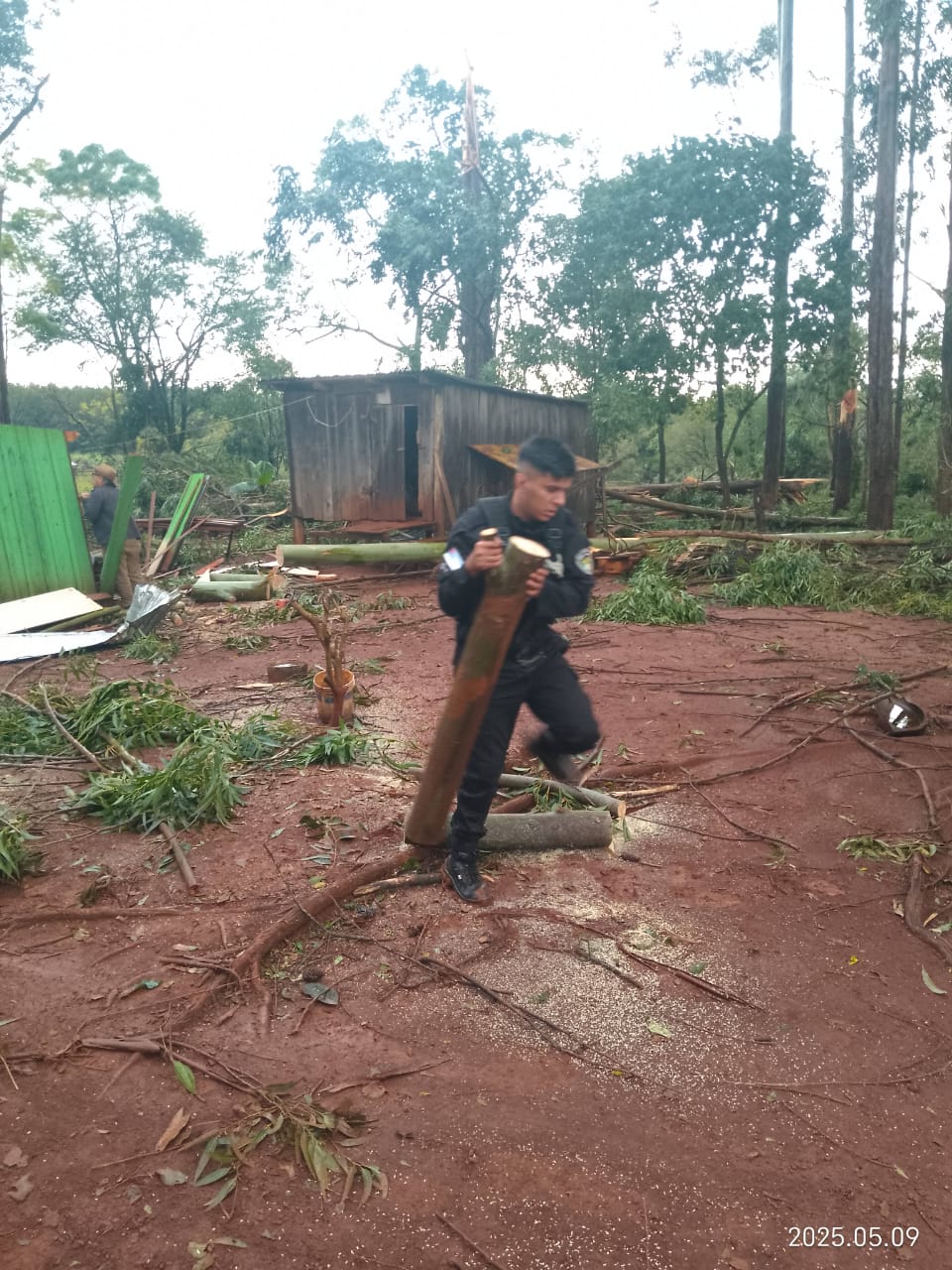 La fuerza provincial desplegó un amplio operativo de asistencia en distintas localidades, junto a municipios, comités de crisis, bomberos voluntarios y entes del Estado, luego del fuerte temporal que azotó a Misiones durante la jornada del 9 de mayo.