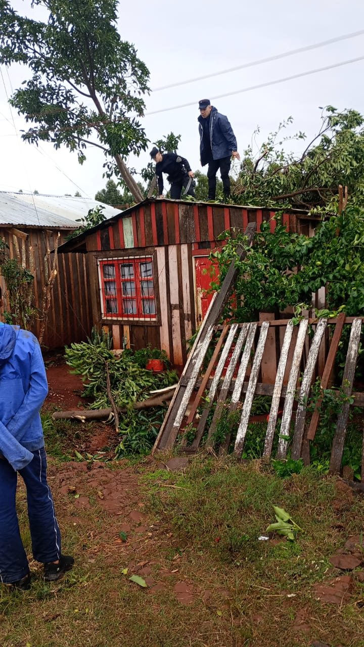 Por su parte, en Salto Encantado, en la colonia Cerro Moreno, se reportaron voladuras de techos, caída de árboles y postes del tendido eléctrico. Un hombre de 55 años resultó herido tras la caída de un eucalipto sobre su casa. Además, otra familia con un menor de edad sufrió daños parciales en el techo de su vivienda. También se registró la voladura del techo de una iglesia, sin víctimas.