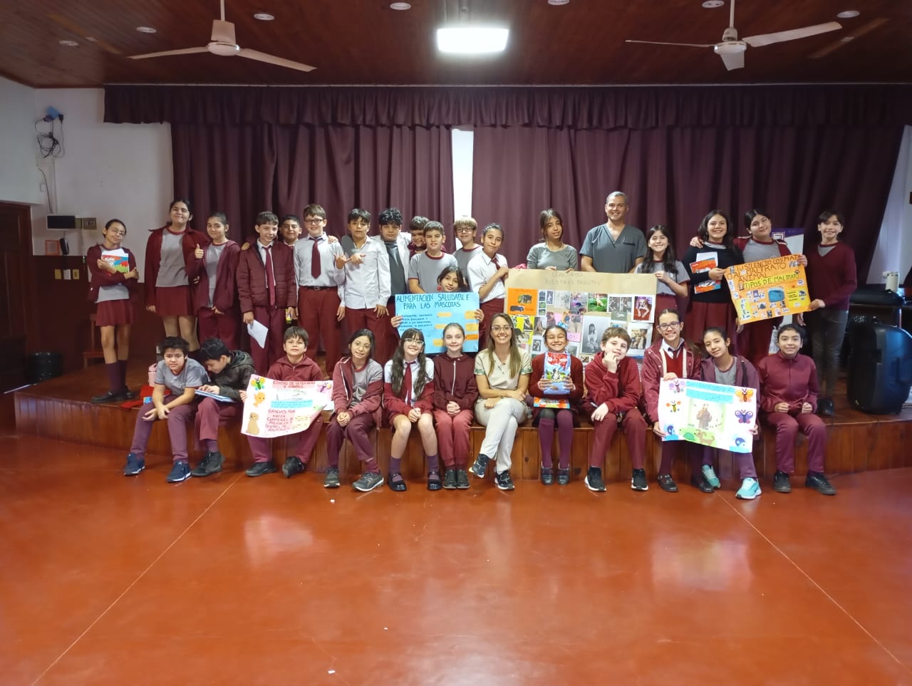 Alumnos de 6° grado A del turno mañana, junto a la profesora Camila Barreto, compartieron información sobre la importancia de la tenencia responsable de mascotas. A partir de allí, surgieron interesantes temas como los cuidados básicos, la castración, la nutrición y las diferencias entre especies y razas.