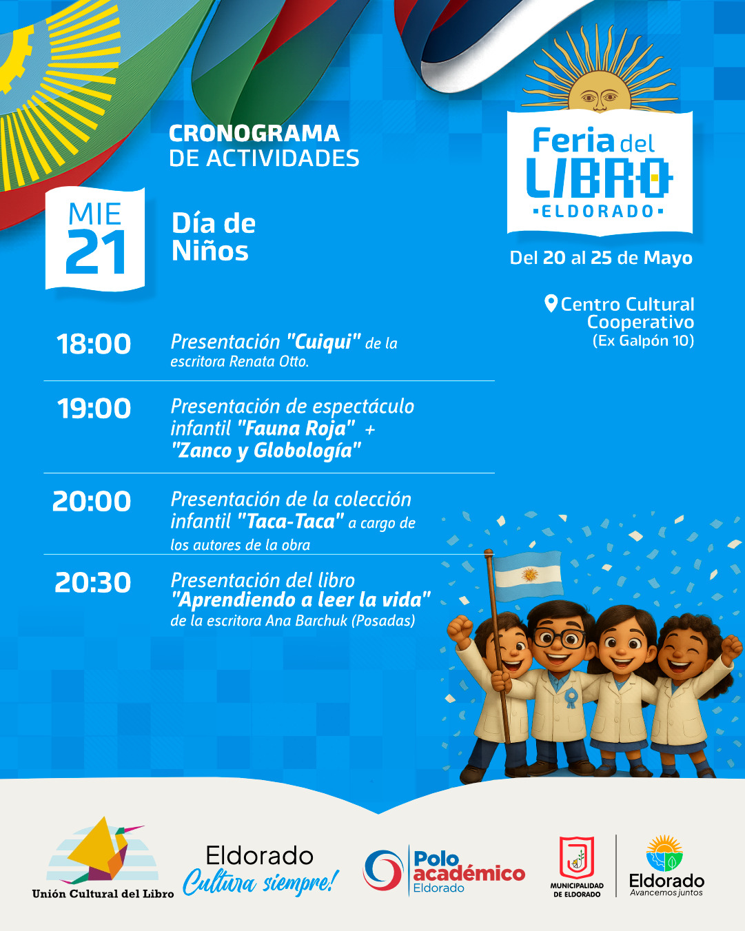 Del 20 al 25 de mayo se llevará a cabo una nueva edición de la Feria del Libro Eldorado, en el Centro Cultural Cooperativo.