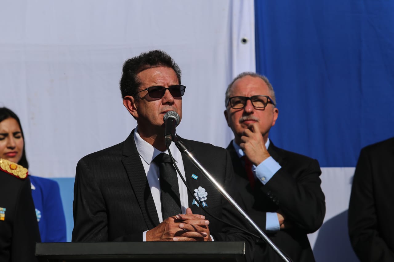 El evento se realizó en la plaza San Martín, con la participación de autoridades provinciales, municipales, representantes del Poder Judicial, fuerzas armadas y de seguridad, instituciones educativas y vecinos de la localidad. En su mensaje, el mandatario reivindicó el valor de la unidad del pueblo como base de la construcción democrática.