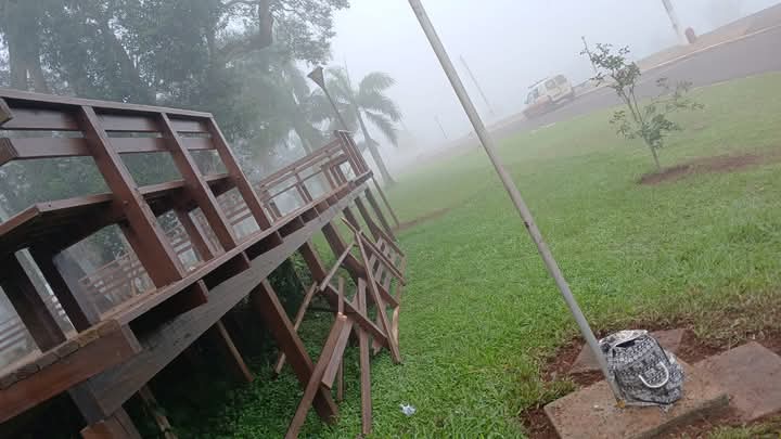 En poco tiempo el individuo destruyó gran parte de la baranda y dañó el mástil, al intentar arrancarlo.