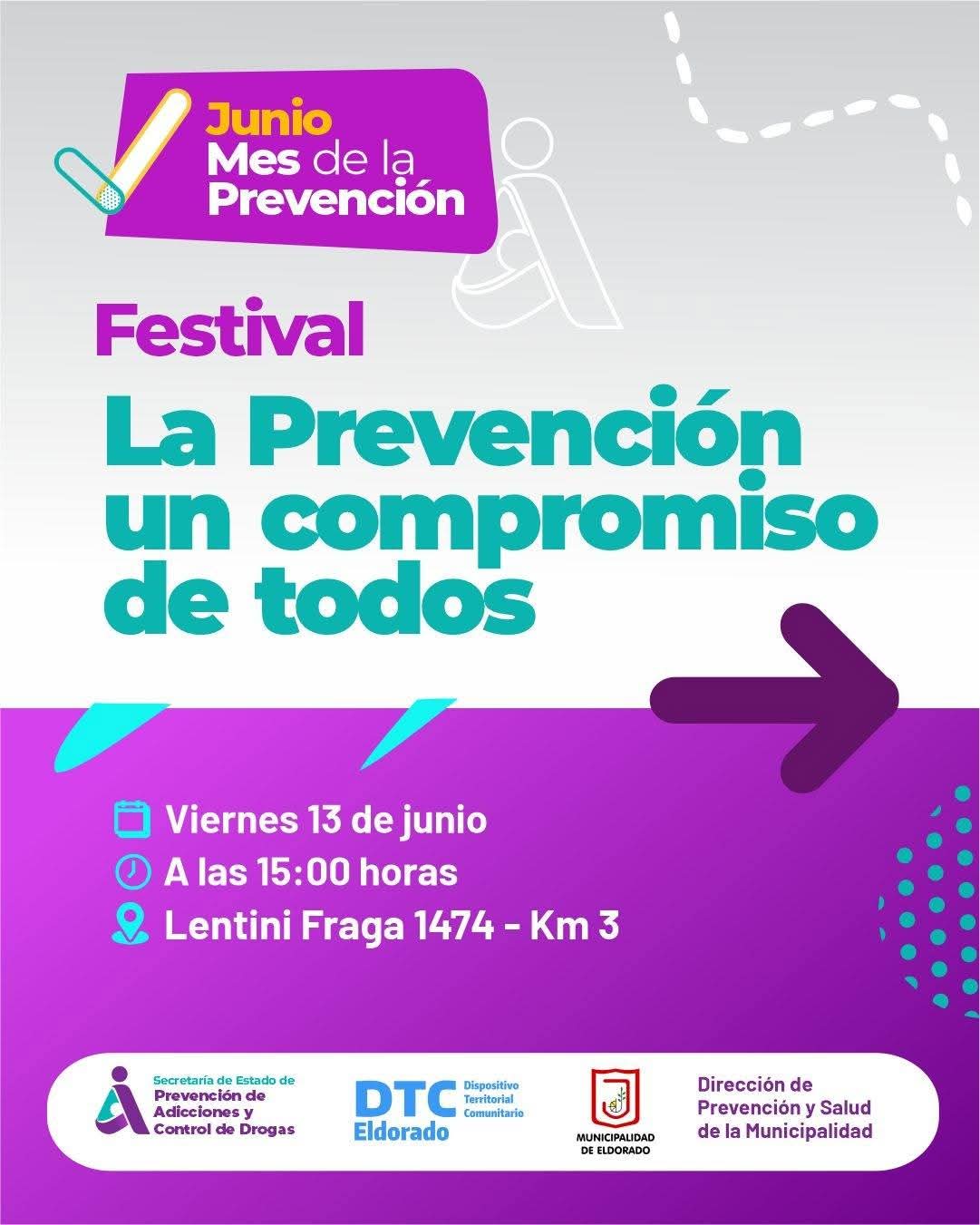 En el marco del mes de junio, el Mes de la Prevención, este viernes 13 de junio en Eldorado se realizará el Festival “La Prevención, un compromiso de todos”