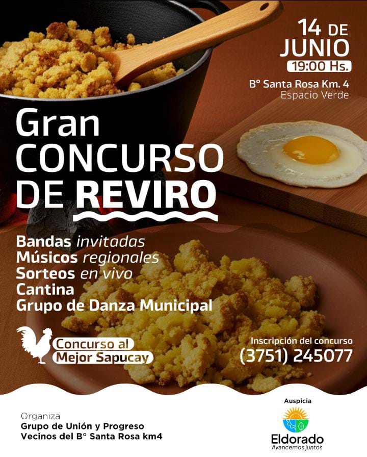 El evento contará con un concurso de cocina de Reviro con 16 participantes, música, baile y un concurso de Sapucay