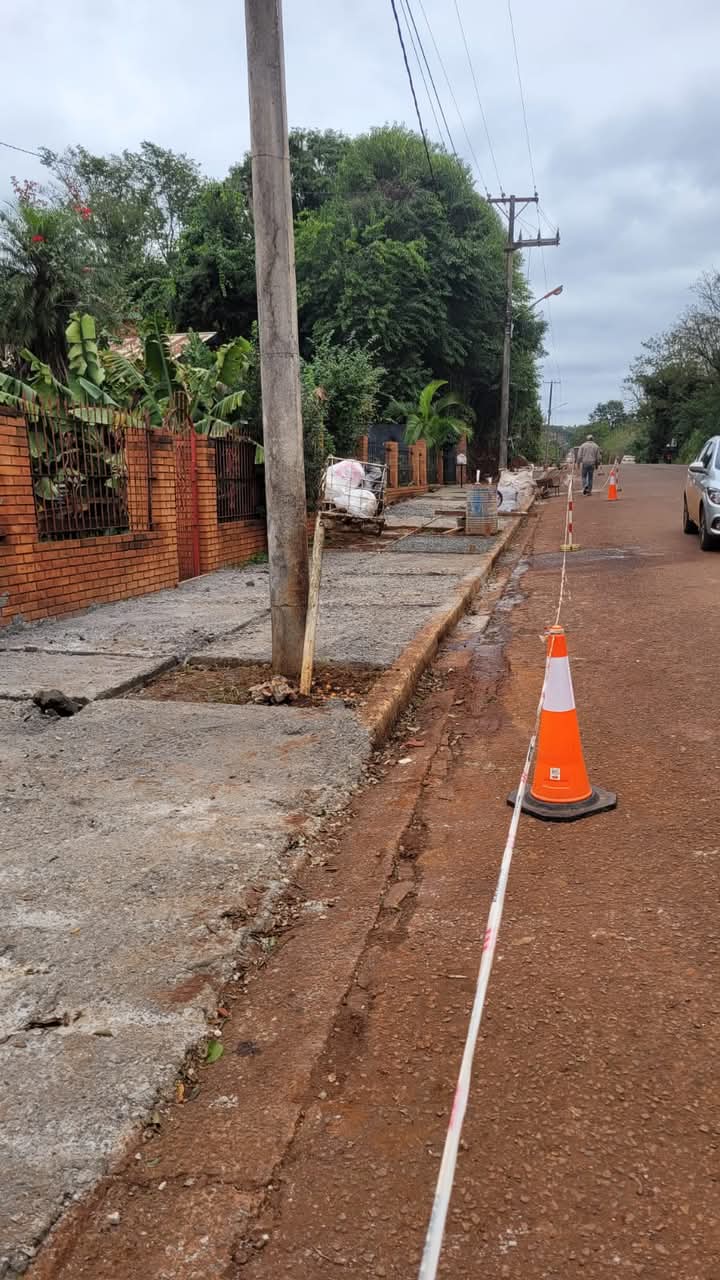 En el marco del programa de construcción de veredas, avanzan las tareas sobre la calle Suiza, en el acceso al Polideportivo Municipal del kilómetro 9, y también sobre la calle Batalla de Obligado.