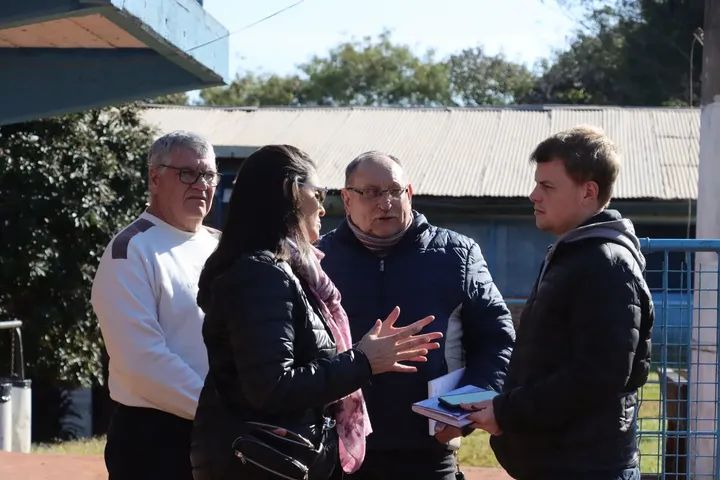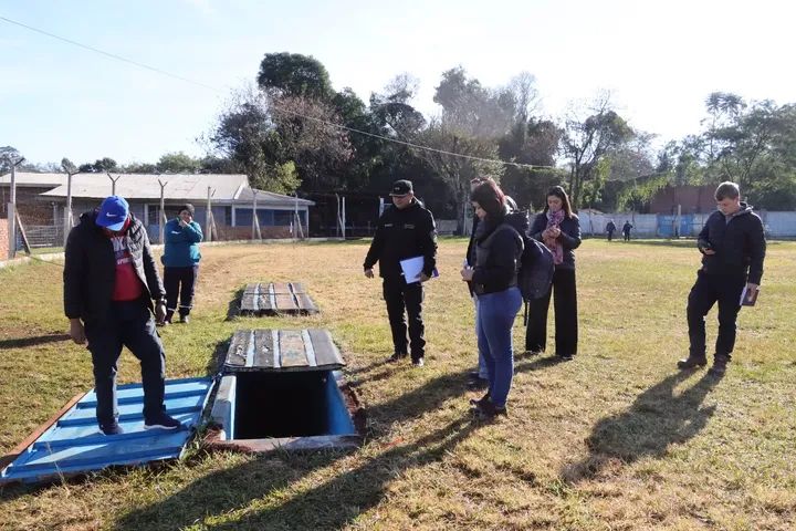 El secretario de Gobierno, Daniel Cabrera, el secretario de Obras y Servicios Públicos, Fabián González, el director de Obras Públicas, ing. Alexis Botz, la directora de Deportes, prof. Lorena Merochenich, el asesor de Seguridad Municipal, José María Sutil Barrios, y el presidente del Club Sportivo Eldorado, Rafael Barreto, recorrieron las instalaciones del estadio de dicha institución.