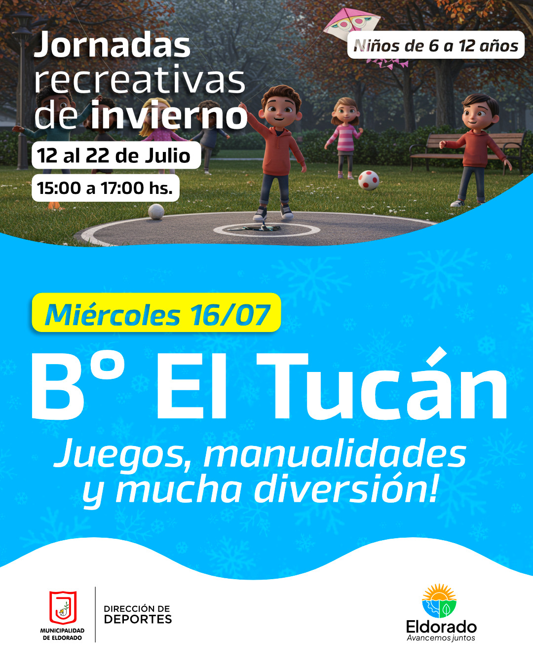 Las actividades se realizan del 12 al 22 de julio, en el horario de 15:00 a 17:00 hs, ofreciendo espacios de juego, deporte, creatividad y alegría para disfrutar a pleno estas vacaciones. En está oportunidad, el equipo municipal estará en el barrio El Tucán.