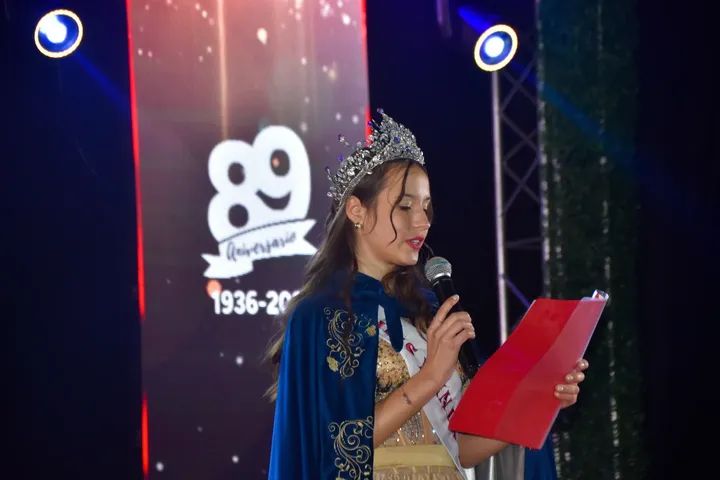 La intendente Faccio, acompañada por su esposo Guillermo Do Niza, y su par de Puerto Esperanza, Horacio Zarza, fue la encargada de entregar los atributos a Agustina Aylén Dávalos y despedir a Valentina Kisiel, reina saliente, en un emotivo cierre que selló una jornada de belleza, arte y encuentro comunitario en el marco de los festejos por el 89 aniversario de la ciudad.