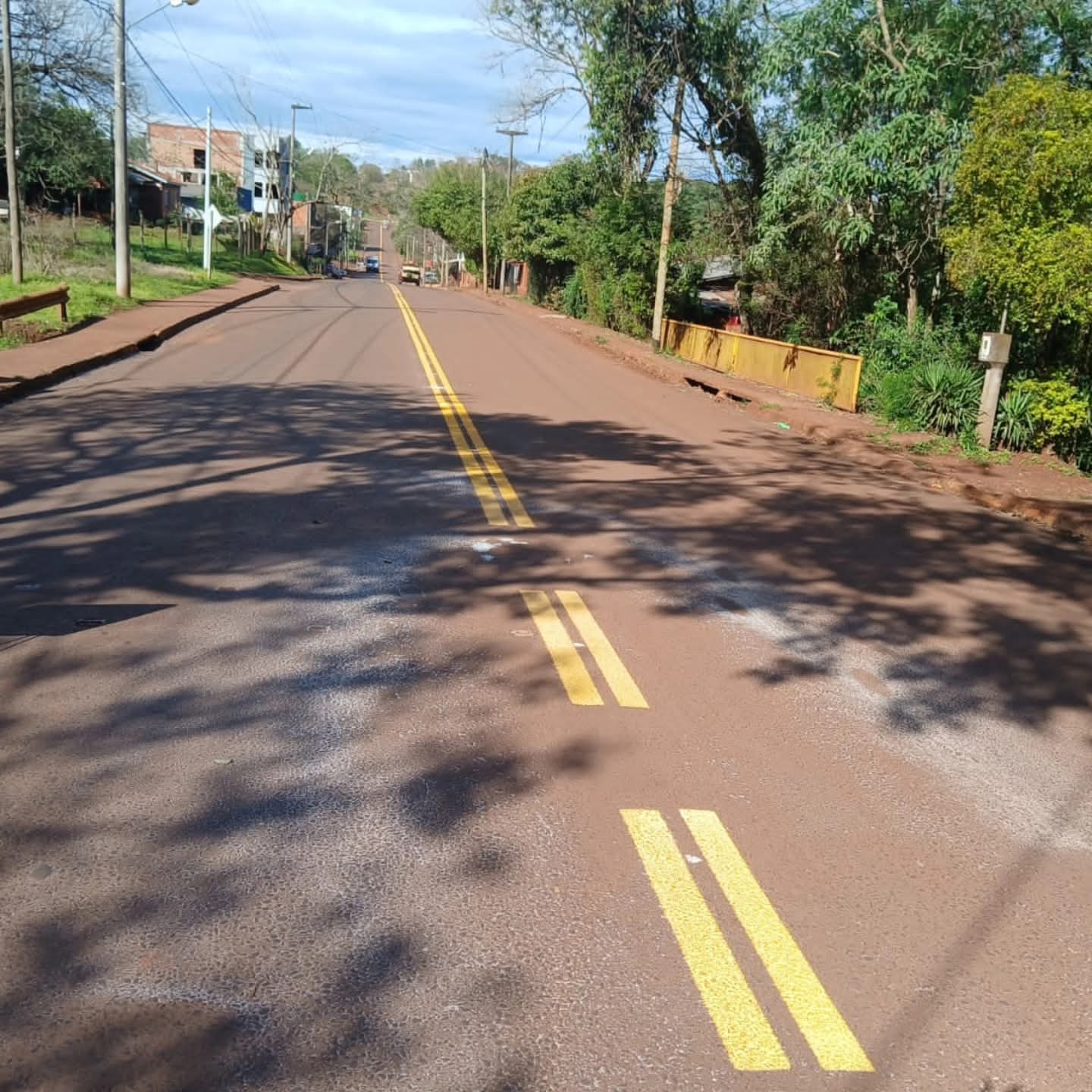 La Dirección de Tránsito de la Municipalidad de Eldorado llevó adelante los trabajos de demarcación del eje central de la avenida Paraguay, en el tramo comprendido entre la calle Pionero Haidinger y la calle Sarmiento.