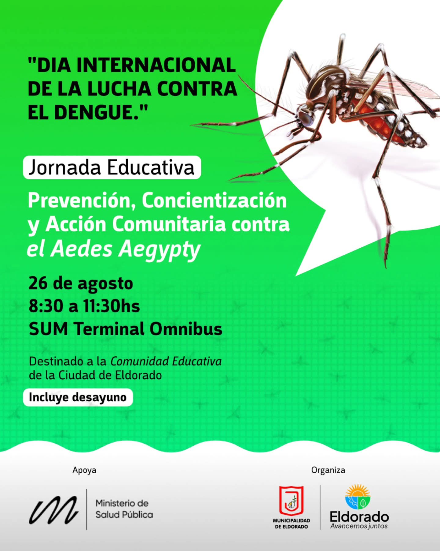 El 26 de agosto se llevará a cabo la Jornada Educativa de Prevención, Concientización y Acción Comunitaria contra el Aedes aegypti, en el marco del Día Internacional de la Lucha contra el Dengue.