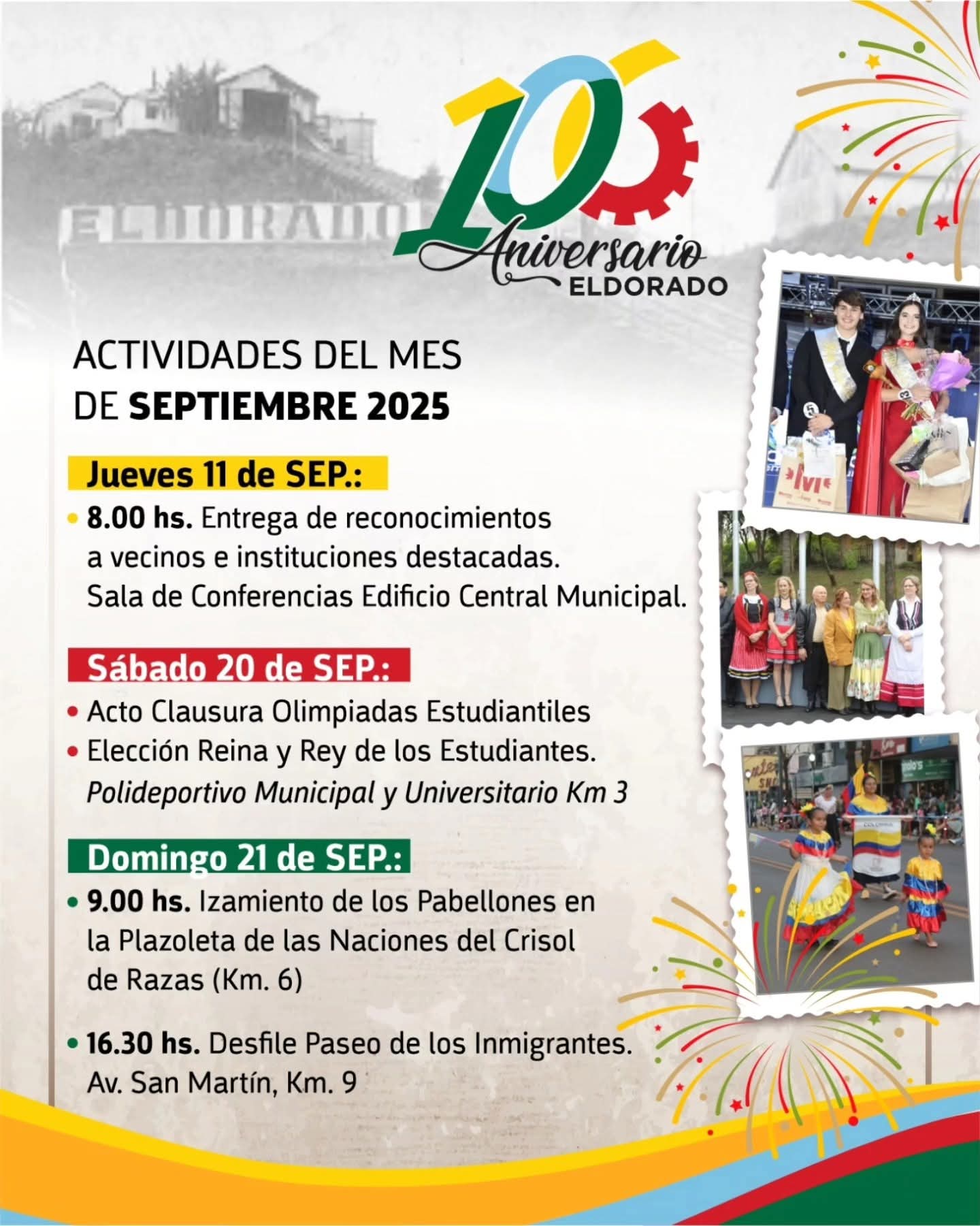 "El aniversario no sería posible sin la colaboración de cada familia, de cada colectividad y de las instituciones. Eldorado es una ciudad construida con esfuerzo y solidaridad, y eso es lo que queremos reflejar en cada acto”.