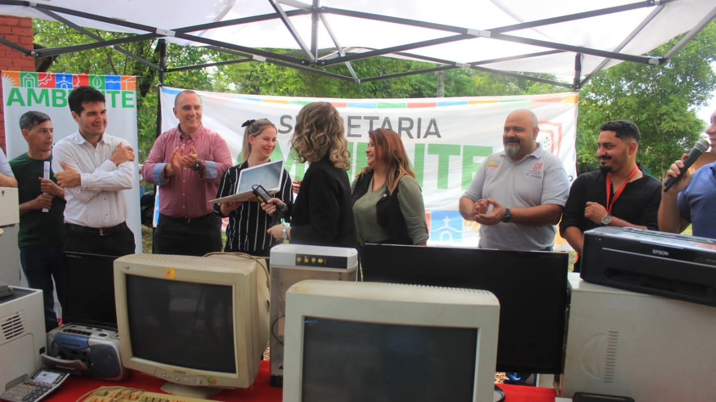 En el marco del Plan de Gestión de Residuos y Economía Circular llevado adelante por la Secretaría de Ambiente, se desarrolló una jornada de recolección de aparatos electrónicos en desuso, encabezada por el intendente de Eldorado Rodrigo "Pipo" Durán y acompañado por todo el equipo de la Secretaría de Ambiente, dando inicio a la gestión de Residuos de Aparatos Electrónicos y Eléctricos (RAEE).