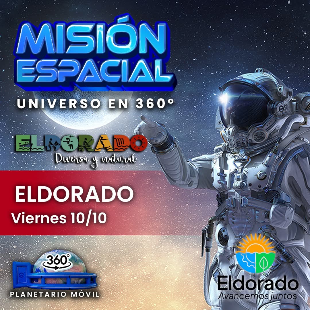 Este viernes 10 de octubre, el Planetario Móvil regresa a Eldorado con una propuesta única para disfrutar en familia. Las proyecciones se realizarán en el Polideportivo Municipal Héctor Hugo Ligorria, en el kilómetro 9, donde grandes y chicos podrán vivir una experiencia educativa y fascinante bajo una cúpula inmersiva de 360°.