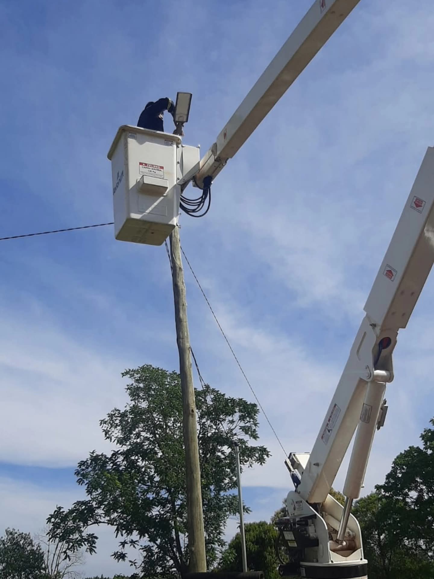 La Municipalidad de Eldorado continúa avanzando con las obras de mejora en el sistema de alumbrado público. En esta oportunidad, se llevó a cabo el recambio de luminarias en el barrio Oeste, kilómetro 3, específicamente sobre la calle Juan Carlos Hobecker y su intersección con la calle Dr. Luis Leloir.