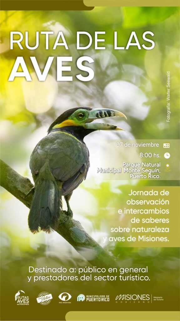 El viernes 7 de noviembre, el Parque Natural Municipal Monte Seguín de Puerto Rico será escenario de una jornada exclusiva a la observación de aves y la valoración de la biodiversidad misionera. La actividad, con acceso libre e inscripción previa, comenzará a las 8 de la mañana y busca fortalecer el vínculo entre la comunidad, la naturaleza y el turismo sostenible.