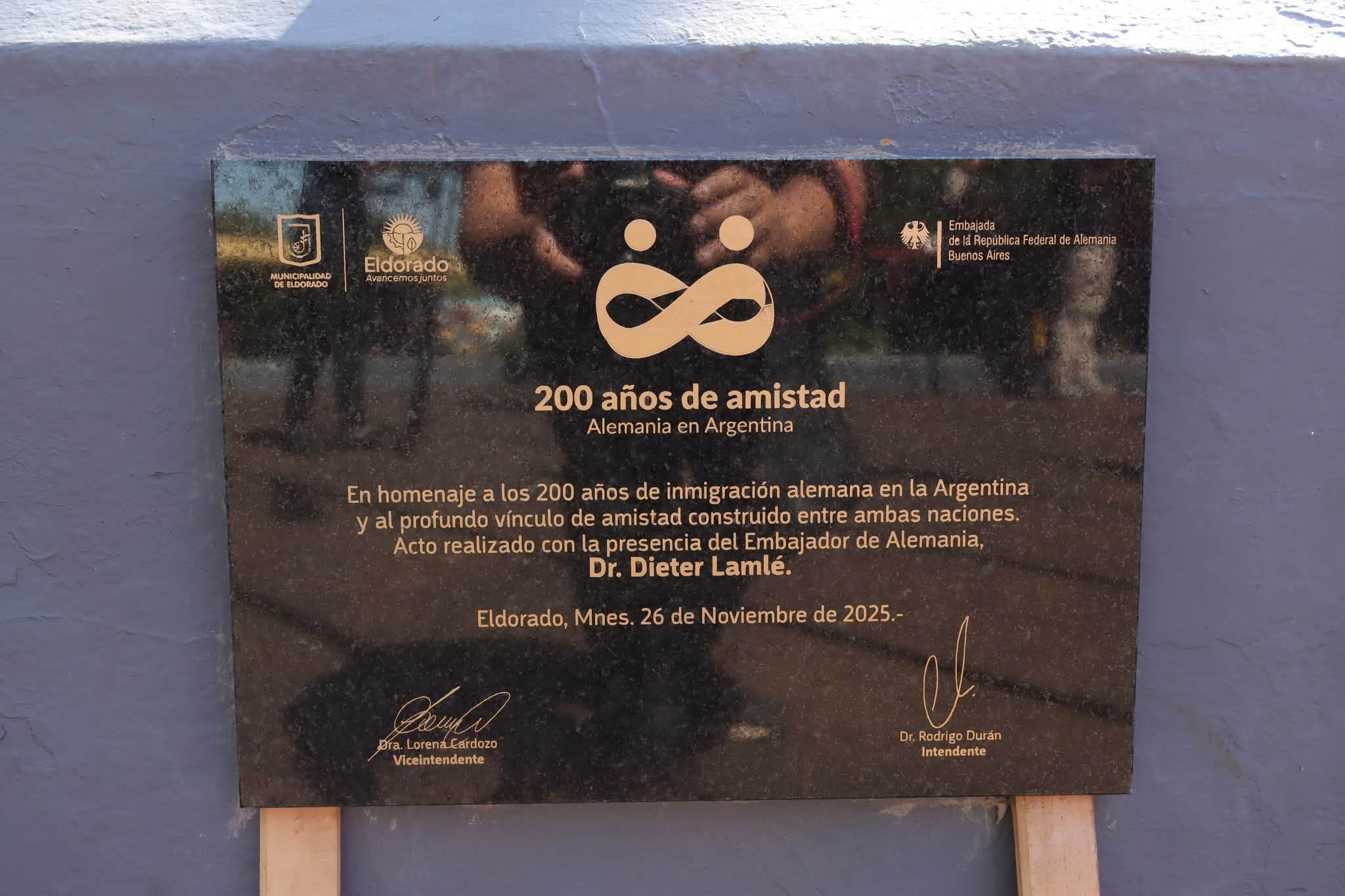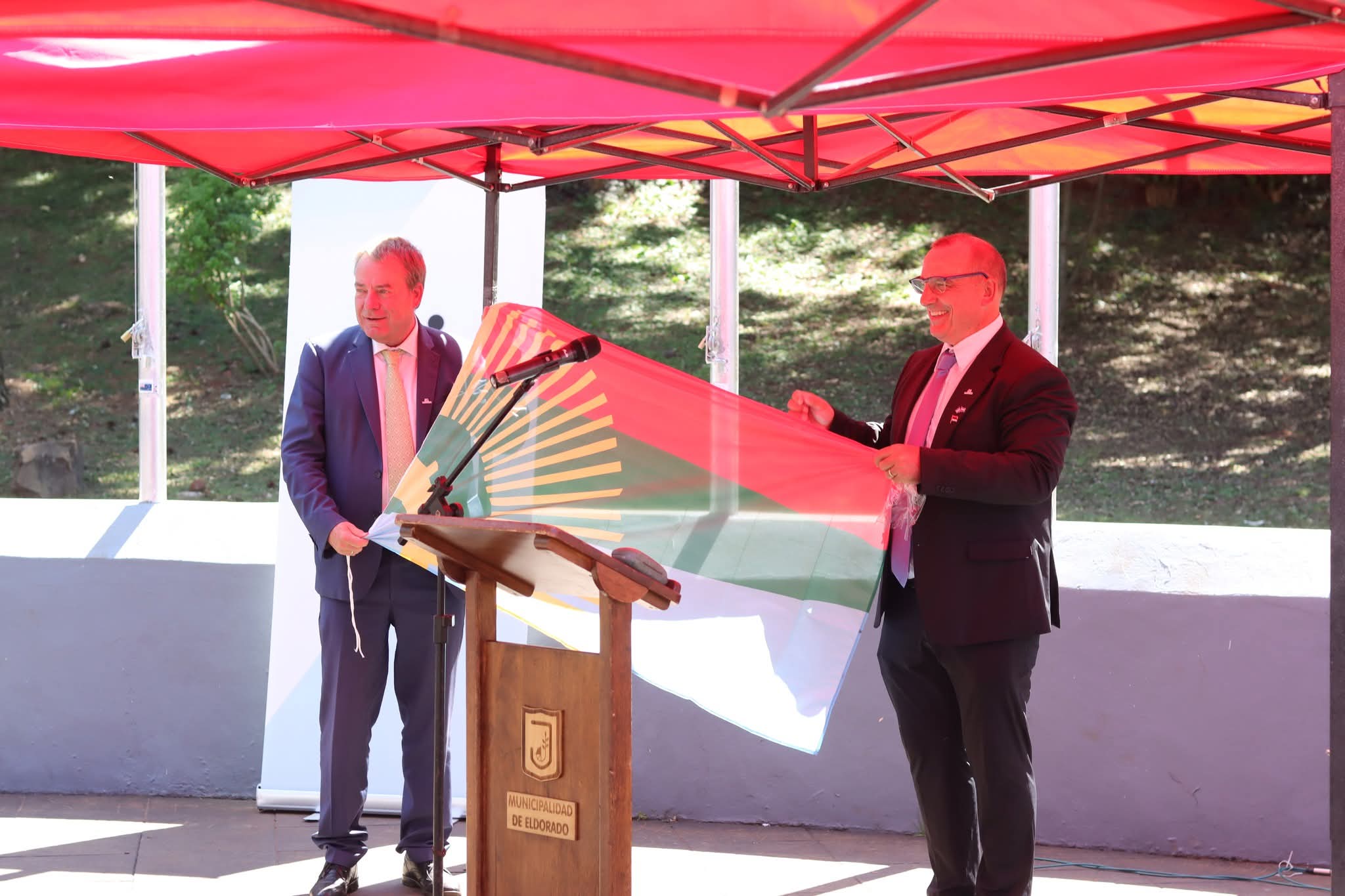 El evento contó con la presencia del embajador de la República Federal de Alemania, Dieter Lamlé, acompañado por el intendente de la ciudad Eldorado, Rodrigo Durán, la viceintendente, Lorena Cardozo; la cónsul honoraria de la República Federal de Alemania en Eldorado, Renata Wachnitz, autoridades locales y miembros de la comunidad.