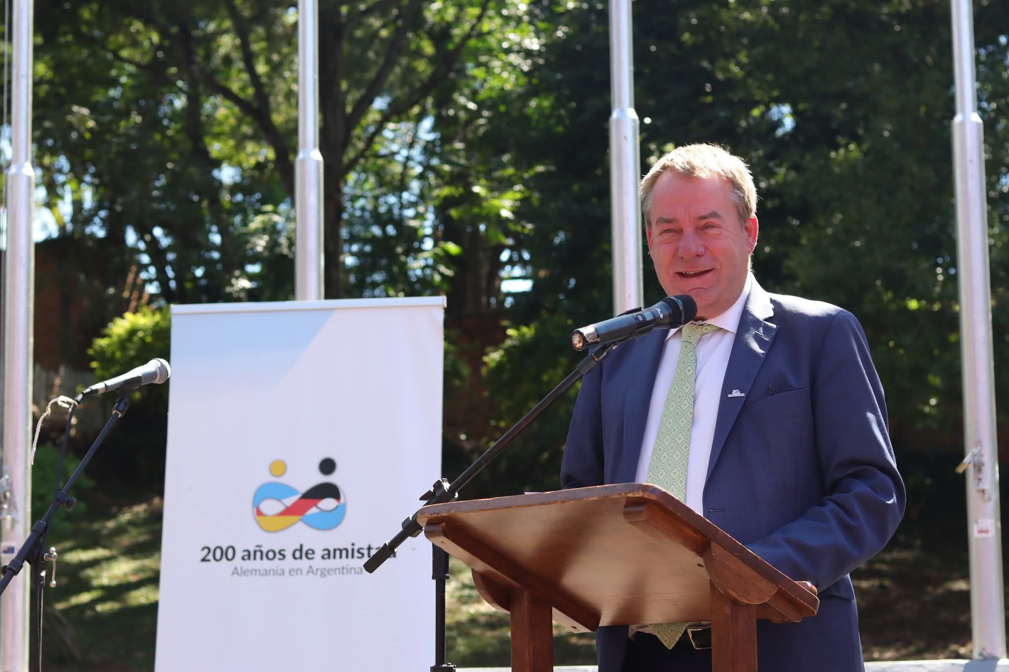 Como parte del acto, se realizó el descubrimiento de una placa conmemorativa por los 200 años de amistad y cooperación entre Alemania y Argentina, y la plantación de un árbol simbólico, en homenaje a las raíces y el legado de quienes llegaron al país hace dos siglos.