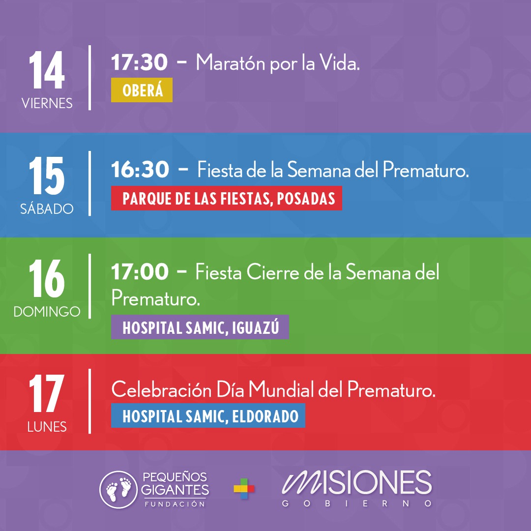En el marco del Mes de los Niños Nacidos Prematuros, la Fundación Pequeños Gigantes y el Gobierno de Misiones darán inicio a la Semana Provincial del Niño Nacido Prematuro, con actividades destinadas a promover derechos, acompañamiento y sensibilización en toda la provincia.