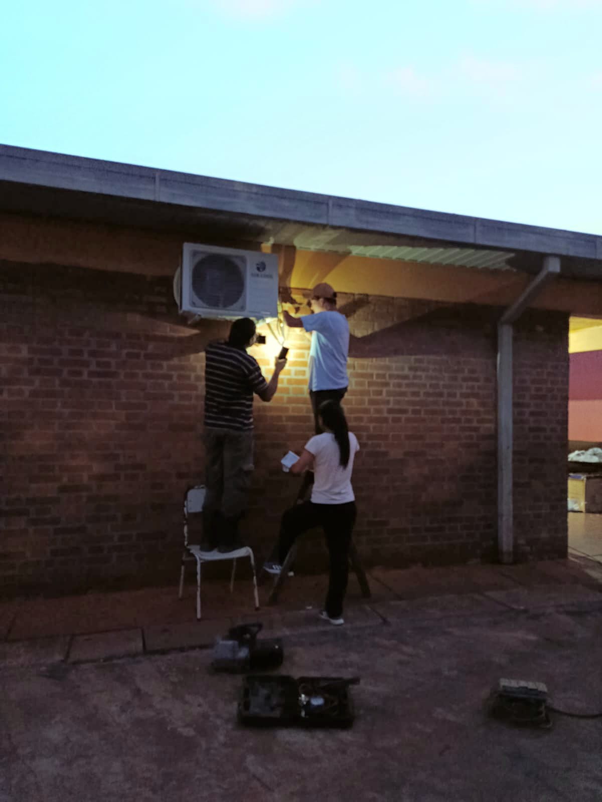 En la Escuela N.º 254 se realizaron trabajos de instalación de dos nuevos aires acondicionados (comprados por la institución escolar), tarea llevada adelante por el taller de Refrigeración de la Escuela de Oficios Municipal.
