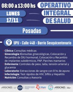 Por la mañana, los equipos de salud de toda la provincia participaran de una jornada de trabajo y actualización de conocimientos en el Hotel Urbano organizado por la referente del programa provincial de Misiones, doctora Elizabeth Méndez. Desde las 8 horas con el lema Salud, diabetes y trabajo: construyendo bienestar».