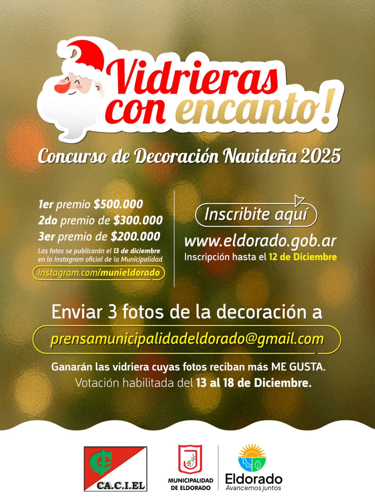 La Municipalidad de Eldorado informa que ya se encuentra abierta la inscripción para participar del concurso “Vidrieras con Encanto 2025”, una propuesta que busca destacar la creatividad y el espíritu navideño de los comercios locales.