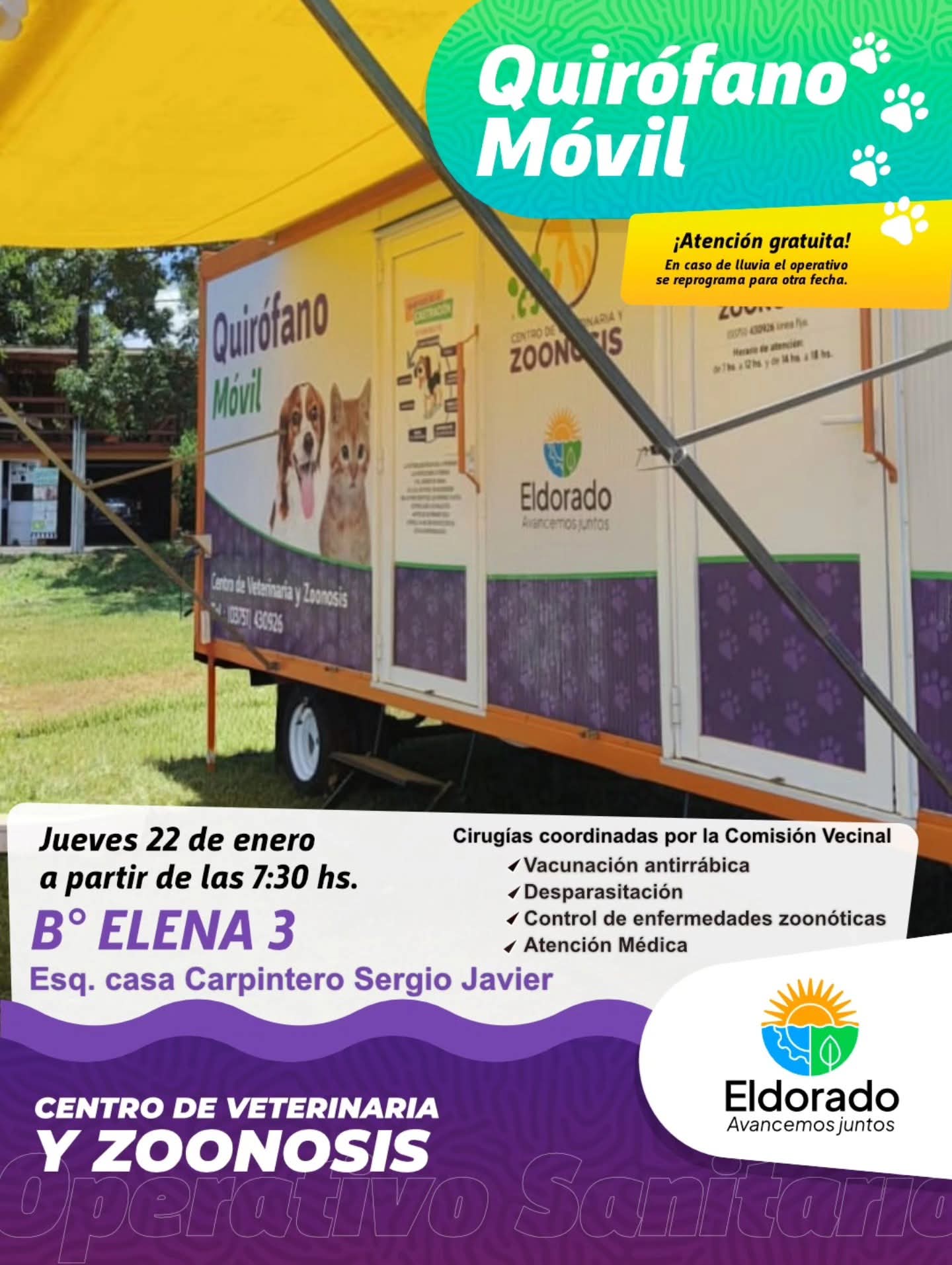 La Municipalidad de Eldorado informó que el Centro de Veterinaria y Zoonosis llevará adelante un nuevo operativo de esterilización de mascotas mediante el Quirófano Veterinario Móvil.