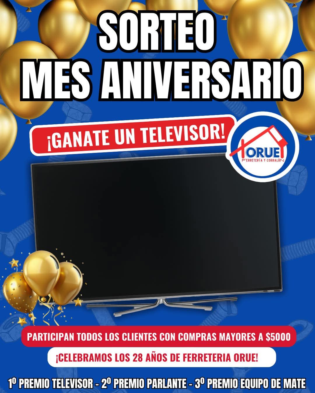 En el marco del mes aniversario, la empresa lanzó un sorteo para agradecer el acompañamiento de la comunidad. Con una compra mínima de 5 mil pesos, ya sea presencial o por transferencia, los clientes acceden a un cupón para participar por un Smart TV de 43 pulgadas, un parlante JBL y un set de mate con termo. El sorteo se realizará en marzo.