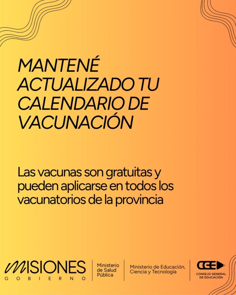 Desde el Ministerio de Educación se invita a las familias misioneras a acercarse a los centros de salud más cercanos para completar los esquemas de vacunación y realizar las consultas necesarias. “Cuidar la salud desde el inicio del año es una inversión en el bienestar y el futuro de nuestros chicos”, recordaron.