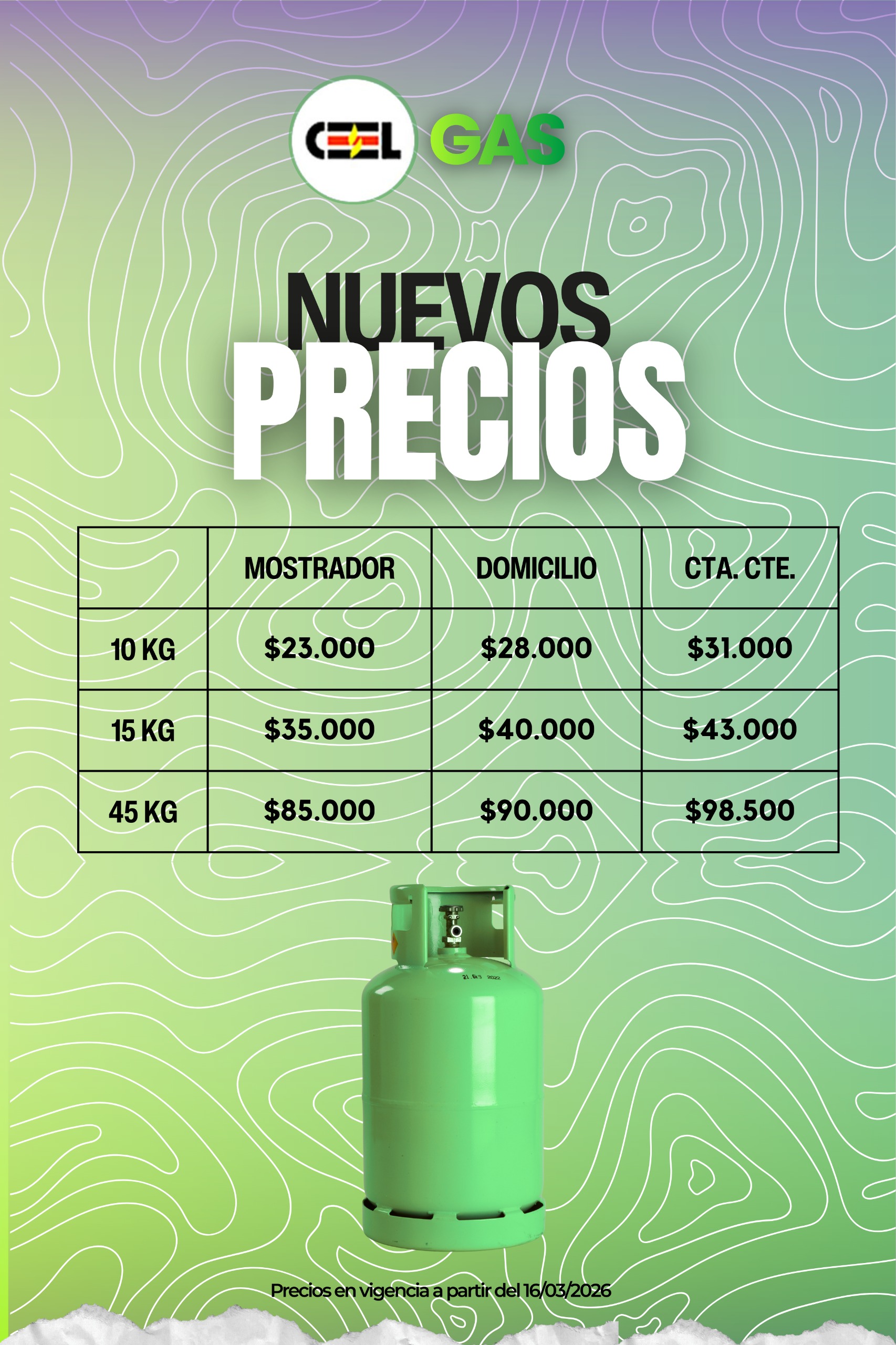 La Cooperativa de Electricidad de Eldorado actualizó los valores de las garrafas de 10, 15 y 45 kilos.