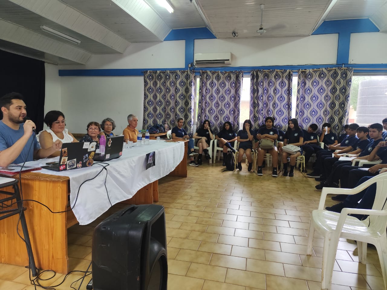La charla fue impulsada por Matías Rojas junto a la profesora de Historia Natalia Pelozo, con el acompañamiento de docentes de la institución. Por parte de la Escuela de Comercio participa en la organización la profesora Gabriela Escobar.