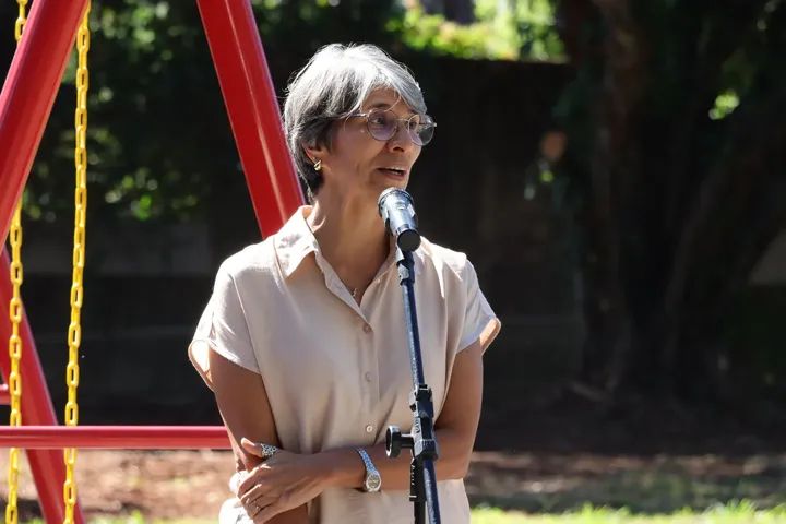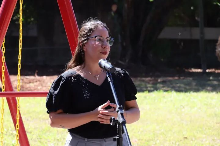 El lanzamiento se realizó en la plazoleta Elena Nürnberg de Nauer, espacio que recientemente fue puesto en valor y que lleva el nombre de quien fuera la primera farmacéutica de Eldorado y una de las mujeres pioneras de la comunidad.