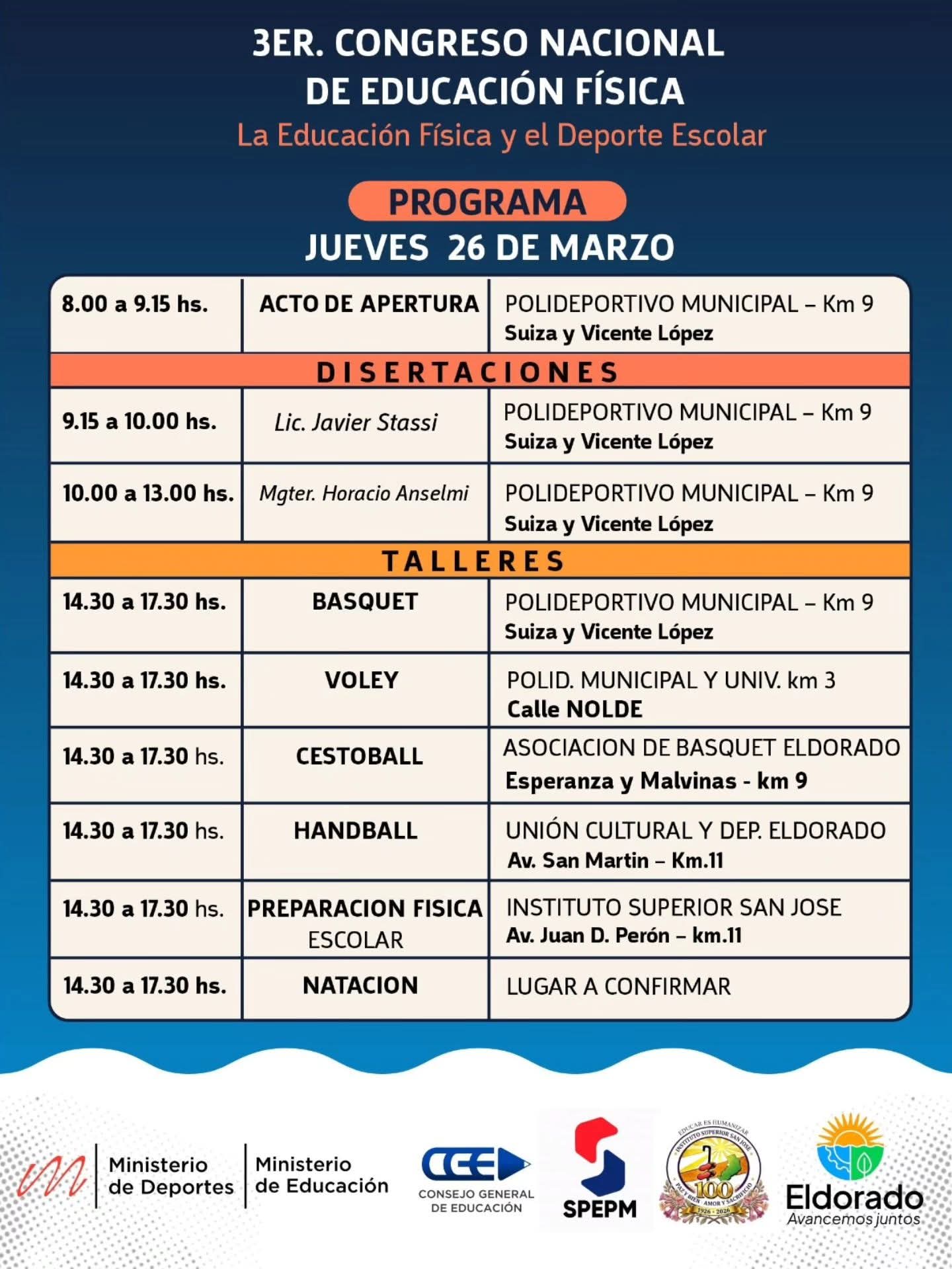 Este viernes se realizó el lanzamiento oficial del 3er Congreso Nacional de Educación Física “La Educación Física y el Deporte Escolar”, que se llevará a cabo en la ciudad de Eldorado los días 26 y 27 de marzo.