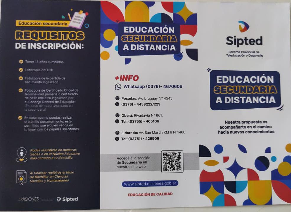 Desde el SiPTeD invitan a toda la comunidad a acercarse, informarse y comenzar el proceso de inscripción para retomar y finalizar sus estudios.