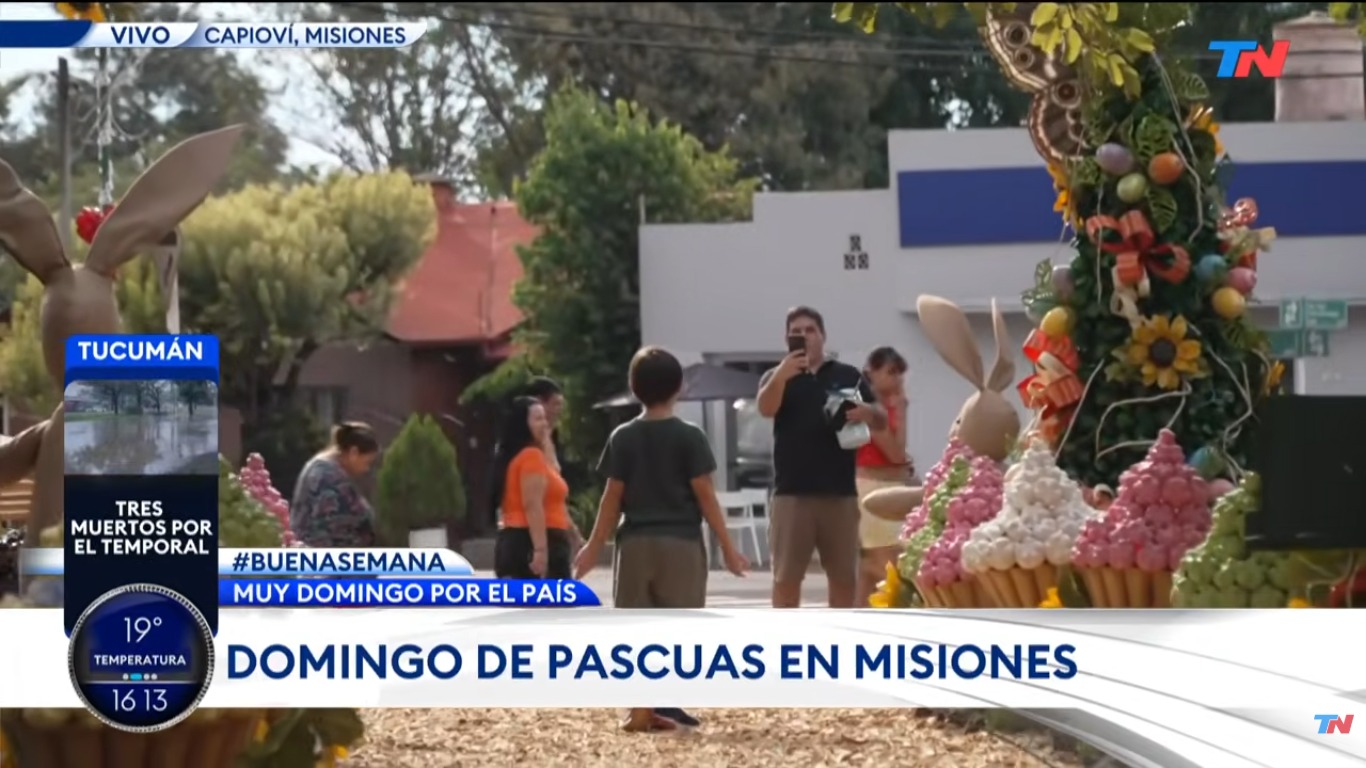 El célebre formato Muy Domingo de TN llegó a Misiones para tener un registro de primera mano sobre la mística de Capioví. Los periodistas buscaron capturar las intervenciones artísticas que transformaron a la localidad durante las celebraciones de Pascuas, tras su reconocida fiesta de la Navidad. Con una nota a fondo, desde los estudios en la Capital Federal destacaron: “Un recorrido maravilloso, un pueblo reconvertido en un parque temático”. Esta mención nacional posicionó nuevamente al municipio como un referente del turismo regional que involucra naturaleza, religión y gestión cultural, basada en el compromiso de toda una comunidad.