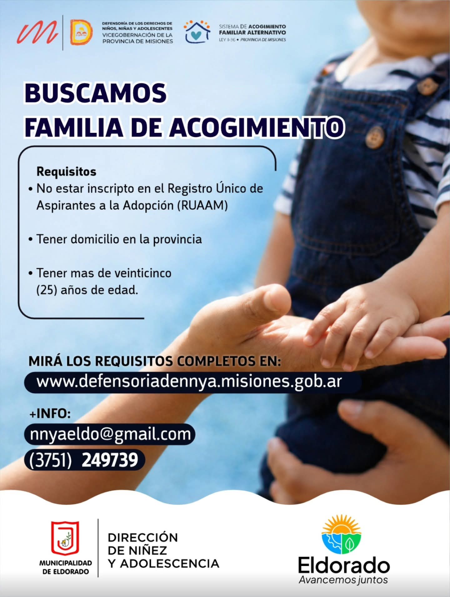 La Municipalidad de Eldorado, a través de la Dirección de Niñez y Adolescencia, lanzó una convocatoria destinada a familias interesadas en formar parte del sistema de acogimiento familiar alternativo.