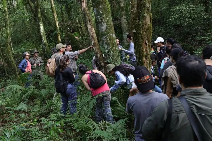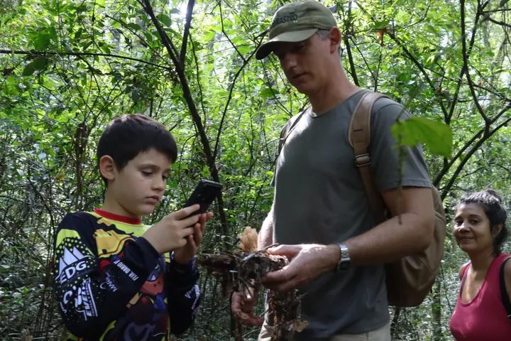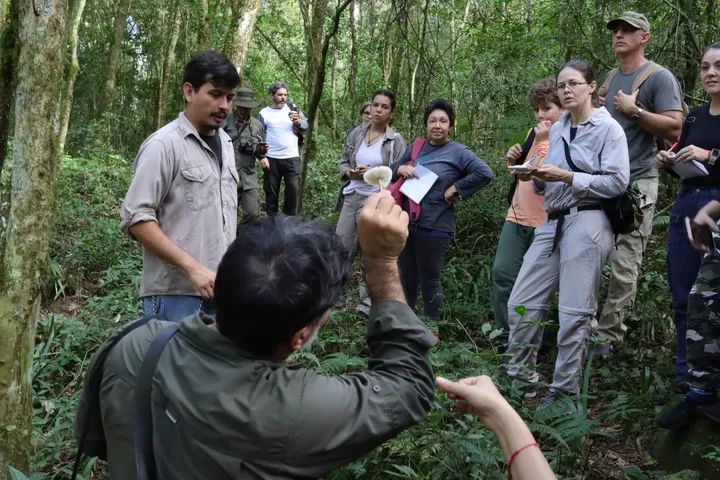 La actividad consistió en una caminata guiada por Santiago Martínez, estudiante de la Facultad de Ciencias Forestales, quien brindó información y compartió sus conocimientos sobre el mundo de los hongos durante todo el recorrido.