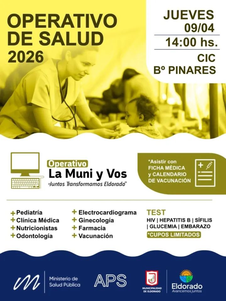 La Municipalidad de Eldorado llevará adelante un nuevo operativo de salud con el objetivo de acercar servicios gratuitos y atención integral a los vecinos.