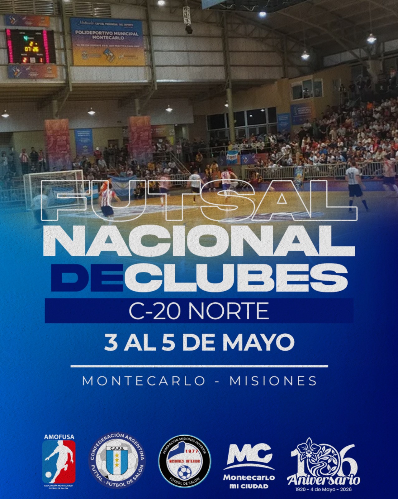 Del 3 al 9 de mayo, la ciudad de Montecarlo será escenario del Torneo Nacional de Clubes C20 Norte, una de las competencias más importantes del fútbol de salón juvenil a nivel país.